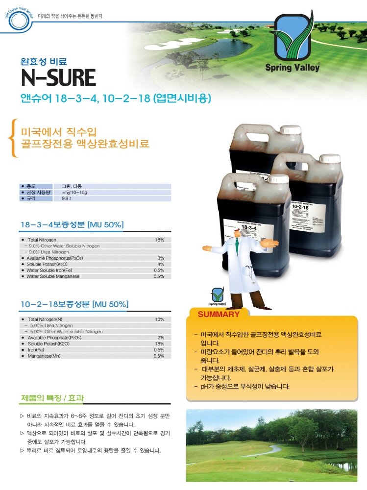 ▷ 액상으로 되어있어 비료의 살포 및 살수시간이 단축됨으로 경기중에도 살포가 가능합니다.